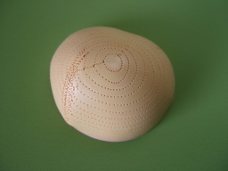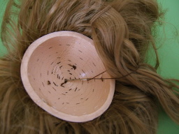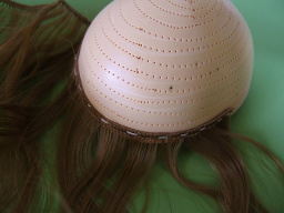 | 髪をすべて抜いた状態の頭皮です。 植毛する髪の色に近いお色に塗ってください。 今回は色を塗らずに縫い付けましたが、 髪の色と地肌の色が大きく違うと思っていた以上に 出来上がりは地肌の色が気になりました。 |