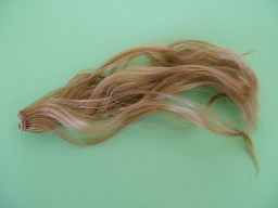 裏を縫いつけてつむじの完成です♪ ういちゃうのでドライヤーで少し整えたら 綺麗になりました。 う〜ん初めてにしては上出来かな? ウェフティングは1束と半分使いました。 |