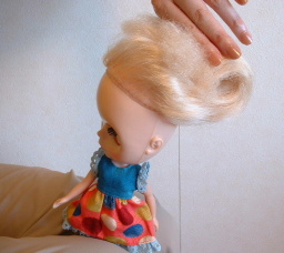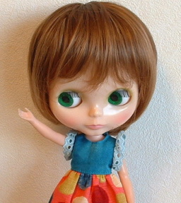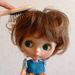 | いつもモデルをしてくれているブライスです。 毛先がチリっているので、髪の量は普通だと思いますが、 ボリュームがあります。 |