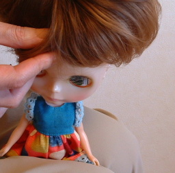 | はみ出てしまった髪はウイッグの中へ 入れてあげてください。 前髪の短い子は特に前髪がはみ出てしまいますが、、 あとから入れればOKです。 |